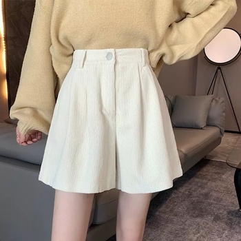 2022 नई कॉरडरॉय शॉर्ट्स महिलाओं के उच्च कमर एक लाइन पैंट बाहरी पहनने आकस्मिक कोरियाई शैली चौड़े पैर ठोस रंग पैंट शॉर्ट्स
